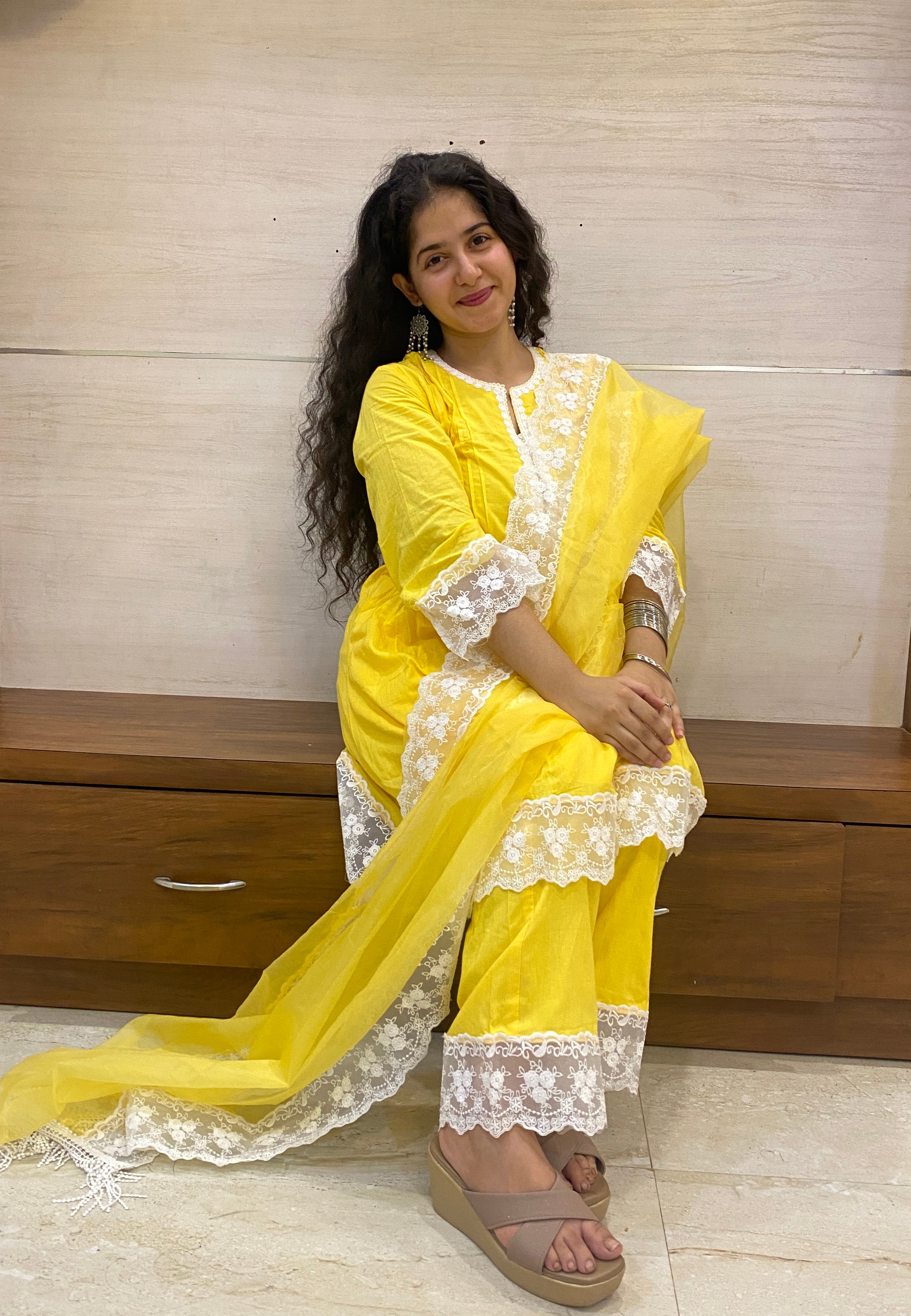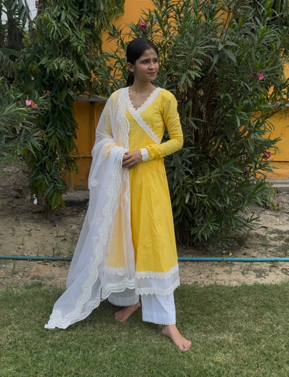Sunshine Yellow Cottan Angrakha Anarkali Kurta Set